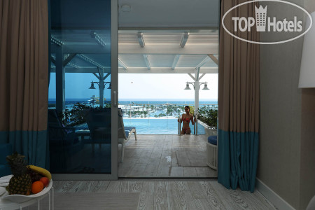 Приехали в отель как раз к заселению, поэтому заселились сразу. Это была корпоративная поездка: сотрудникам оплачивал тур работодатель, за семьи сотрудники оплачивали сами. В общем нас было порядка 80-90 человек включая маленьких детей. С 3 по 10 мая в отеле проводится фестиваль Спортволна и половина постояльцев отеля - участники этого фестиваля (как и наша компания). Один из работников отеля сообщил мне, что отель был заполнен ровно на 50%. На пляже и у бассейнов всегда было свободно. В этом отзыве я не буду писать про фестиваль, а напишу именно про отель.