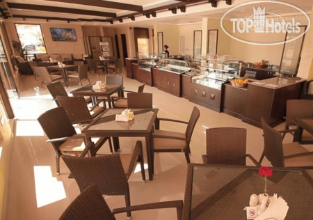 В отеле: номера, ресторан, бассейн, море. Все! Очень чисто, персонал приятный, когда мы приехали контингент по возрасту был 50+, русские 90%) анимации 0, мы так и хотели. Номера хорошие, тихие, соседей мы не слышали) бассейн теплый, чистый. Брали только завтраки: все есть, йогурт, блинчики, омлеты, овощи и фрукты в минимальном объеме. На обеды и ужины ходили в кафешку, называется Fresh meal. От отеля направо до кругового движения, затем налево, сразу за продуктовым магазином. Вкусно, недорого и не сухомятина как в основном везде) Ещё на против отеля отличный продуктовый магазин, в отеле дают воду 1,5 л каждый день в 10 утра, нам не хватало и мы покупали в магазине. На завтраке воды не было, такое первый раз- кофе, соки есть а вода платно.