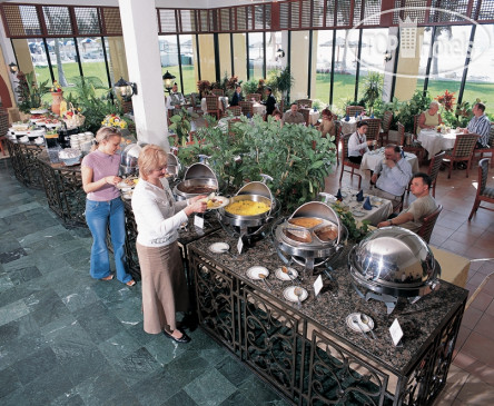 Питание мне понравилось, шведский стол. Выбор достаточный. На завтрак: фрукты, выпечка, сыр, колбаса, овощи, йогурт, каша жидкая, яйца, омлет, скрамбл, хлопья с молоком, чай и кофе хороший из кофемашины капучино и американо, только молоко низкой жирности, поэтому пенка не держится у капучино, соки (кстати не порошковые, а просто из коробок, вкусные)
