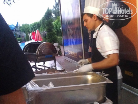 Питание очень понравилось, особенно ужины! Все приготовлено было очень вкусно и сытно, разнообразные блюда. Повара старались, все свежее, горячее. сам ресторан расположен грамотно, внутри не жарко, кондиционеры работали исправно. Плюс очень много столиков на улице. Официанты вежливые, работают быстро и слаженно. Каждый день шеф-повар прохаживался по залу.