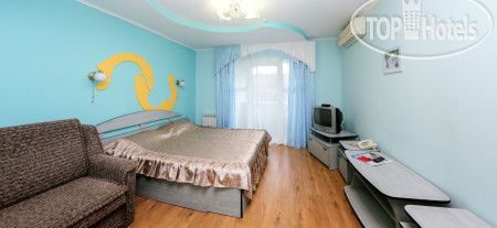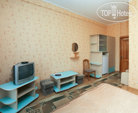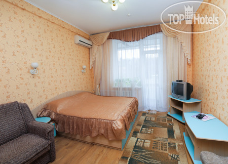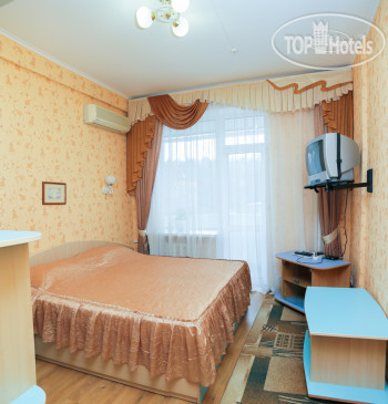 Номер просторный комната метров 16, просторная ванная комната метров 8 с душевой! Небольшая прихожая с холодильником и вешалкой! В комнате большой шкаф с посудой, ножом, чайником, разделочной доской и феном! Хорошо и тихо работал кондиционер! Ночами довольно тихо так как окна выходили на противоположную сторону от дороги! Довольно чисто , хотя в номере все простенько! Убирали каждый день! Белье за 9 дней меняли три раза, белье без дырок, без пятен, белоснежное! Полотенца