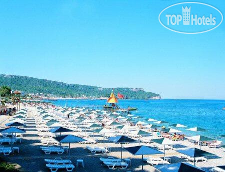В целом, отель неплохой,но есть ньюансы.. для нас это было то,что на номер выдают всего одну карточку, что очень неудобно, когда проживают 3 человека и надо зависить друг от друга.. второе,что немного напрягало-постоянные очереди за едой, напитками.. на весь отель рвботает только один бар, за едой очереди как в мавзолей. Выбор еды очень небольшой, но голодными не остались. Стоит учитывать,что лобстеров и мраморную говодяну не подают. Алкоголь как везде, кофе довольно сносный. Кола,фанта- только через бармена)) пляж- довольно тесный, за счет водных развлекух, места не очень много. Лежаки средненькие,но терпимо. От отеля до пляжа идти мин 5. На пляже бесплатно только вода, чай,кофе и крашеные напитки типа юппи)). Пиво за денюжку. Интернет только в лобби и около ресторана, и еще если номер недалеко от всего этого,временами можно зайти в интернет. Но, не всегда и не с первой попытки. Отель находится прямо за углом от главной улицы,в этом плане есть куда прогуляться. Номер нам понравился, убирались у нас каждый день и очень хорошо, никаких претензий. В целом- несмотря на какие-то минусы,отдых понравился. Главное, солнце,море)) кстати,на пляже галька, но заход не плохой. Если бы решили вопрос с очередями за едой и напитками,а также все-таки хотя бы 2 ключа давали на номер, нам все понравилось! Плюсов все-таки больше,чем минусов,но есть куда стремиться))