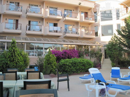 Отличный отель. Приехали рано утром,до завтрака, хорошо с девушкой с одного города в один отель приехали. Пошли погуляли, потом сходили на завтрак, но заселение сказали только в два часа. В итоге заселили в 12.00. Номер стандартный, чистенький, в холодильнике стояло две бутылки воды и две минеральной, пополняли каждый день. Ванная комната не большая, раковина маленькая, также и душевая небольшая. В ванне наборы, гель, шампунь, ватные диски, шапочки для душа. На балконе нет сушилки, но у меня всегда с собой верёвка и пара прищепок, было куда привязать. Вид с балкона на дорогу, но это прям норм, никаких пьяных орущих и прям сильного шума от машин (как писали в другом отзыве) не слышно! Номер 235! По поводу интернета ничего не знаю, так как роуминг подключаю везде,где отдыхаю.У отеля очень удобное расположение! Погулять есть где- по набережной, клубы, кафе, магазины все рядом! До пляжа идти минут 5-7. Ходить полезно! Сам пляж конечно не большой, шезлонги стоят близко к друг другу (но такое положение и у пятерок рядом), столиков нет, по утрам на пляже видимо после ночи(народ пьёт, отдыхает), грязновато, чистоты на пляже не хватает. Между нашим и пляжем другого отеля есть кусочек общественного. Но самый огромный минус, в чем очень нужно руководству отеля принять меры- это сдача в аренду шезлонгов чужим! Соответственно за своими вещами следите сами, хоть воровства и не было. Пару раз были стычки между турками, то ли кого то выгоняли, то ли ещё что то. Вход в мире галька, море чистое, теплое, я без коралок, мне норм, массаж ног зато! Рядом центр морских развлекух- бананы, гидроциклы и прочее. Дневной анимации в отеле нет, да и не нужна она, весь день на море. В бассейнах не купалась. Вечером какое нибудь шоу, даже интересные) потом дискотека до 12 ночи, но это не каждый день. Хотя было такое,что и каждый день подряд и дискач, музыку включают разную, и для русских, и для украины, и для турков. В отеле много было из Беларуси, Литва, Россия, Украина были отдыхающие, все спокойно и мирно🤝 Алкоголь нормальный, пиво вкусное, коктейли делают разные, тоже вкусные, вино пробовала белое-норм. Питание в отеле отличное! И мясо, и рыба, и супы, рис, макароны,морепродукты были. Все очень очень вкусно! А арбузы- это бомба, я таких вкусных, сладких давно не ела! Дыни были, яблоки, сливы, виноград, персики, апельсины! Короче кто докапывается до еды в отзывах- просто зажрались! За две полноценные недели мне не приелось ничего! И даже не хотелось своего борща и ещё чего нибудь. Обожаю их супчики. Отель очень понравился!👍 И ребята,которые там работают в баре, в столовой- молодцы! Персонал приветливый, отзывчивый, а по утрам шеф повар- с добрым утром, чудесного дня всегда пожелает и сама всем лёгкой работы желаю). И не забывайте благодарить за их труд материально или гостинцами из своих городов🤗🤗🤗 Всем мира,добра и побольше путешествий 😊
